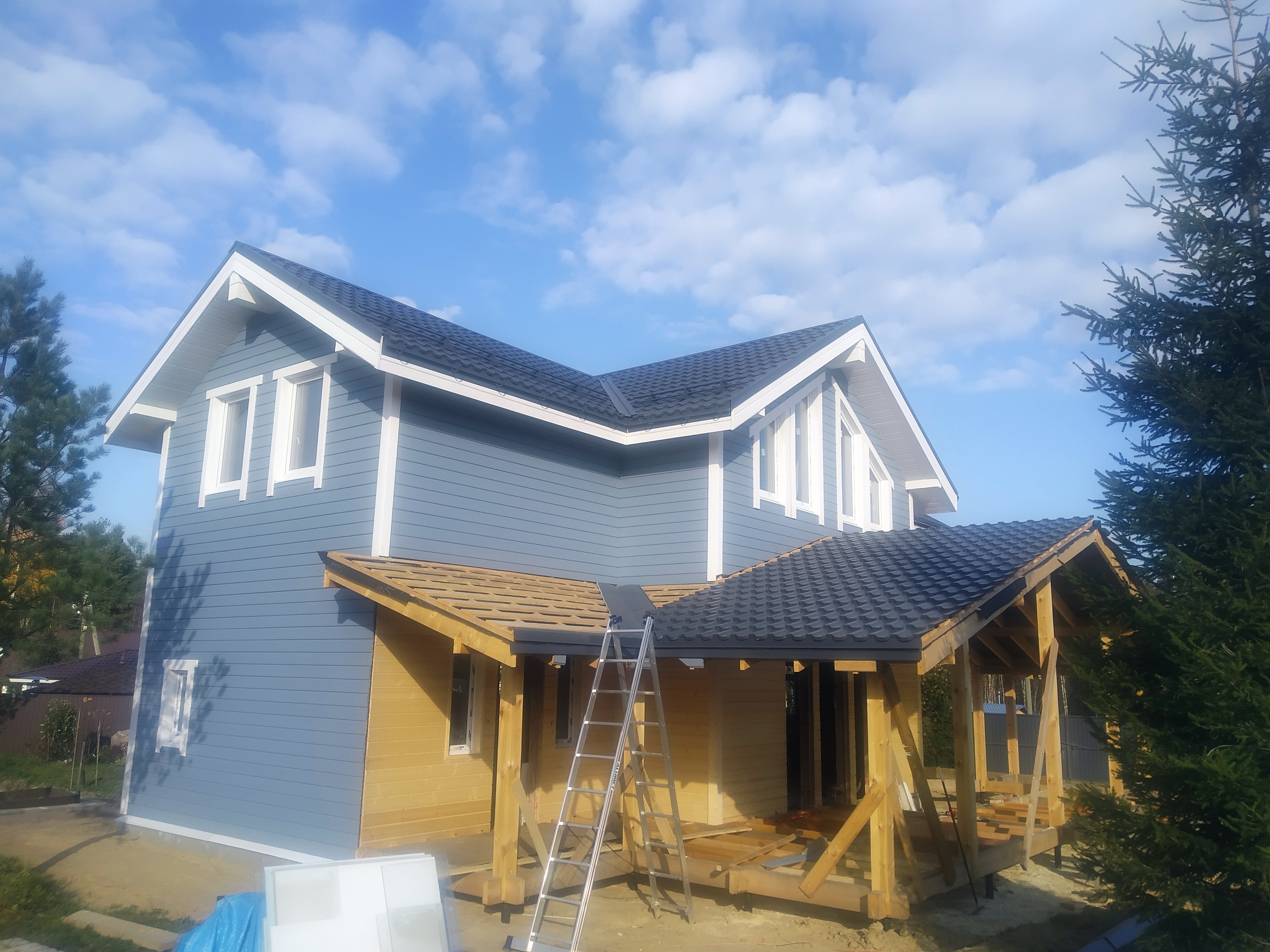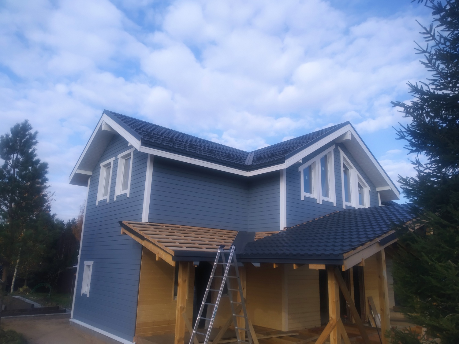 Официальный дилер Ruukki - компания СФК Строй Комплект поставила на объект в к. п. Новые дубки модульную металлочерепицу Ruukki Finnera в покрытии GreenCoat Crown BT в цвете RR23 (темно-серый) и весь кровельный комплект.