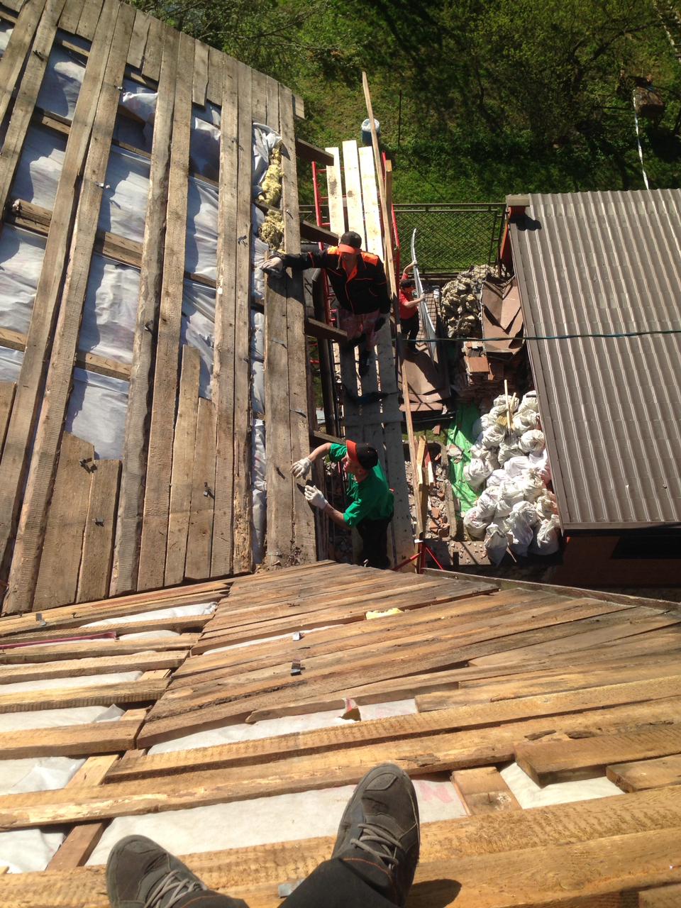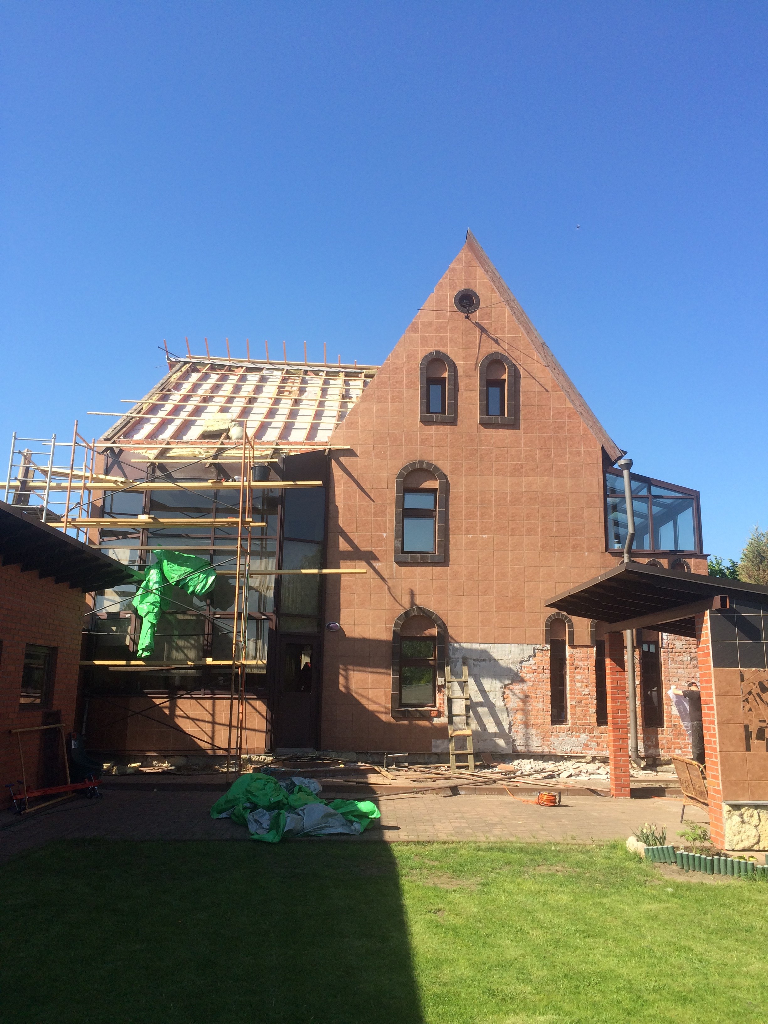 - работа на большой высоте и крутой уклон кровли осложняли работу;